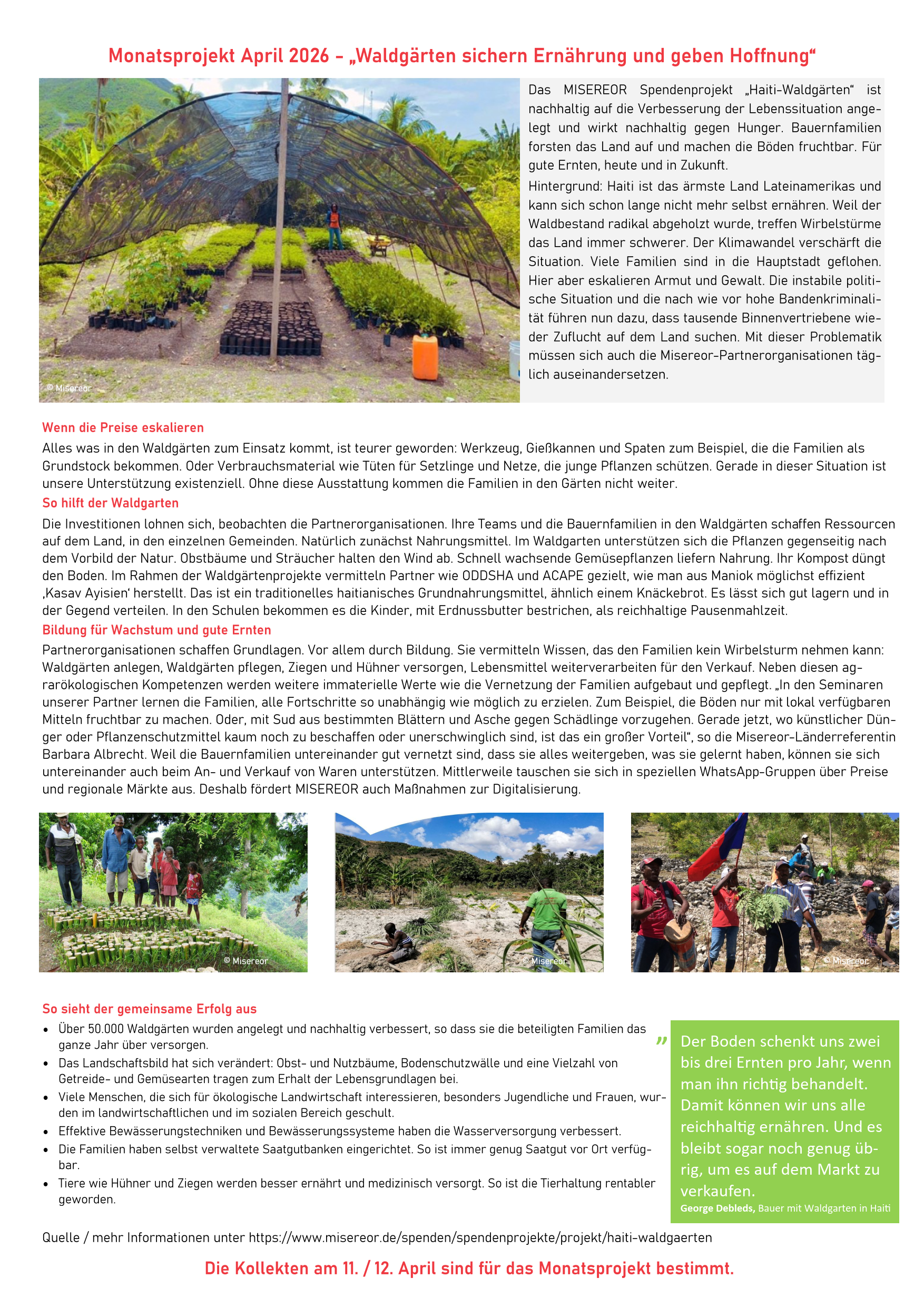 - Einmal im Monat wird Kollekte für das jeweilige Projekt gehalten. Der Termin wird im Newsletter bekannt gegeben.